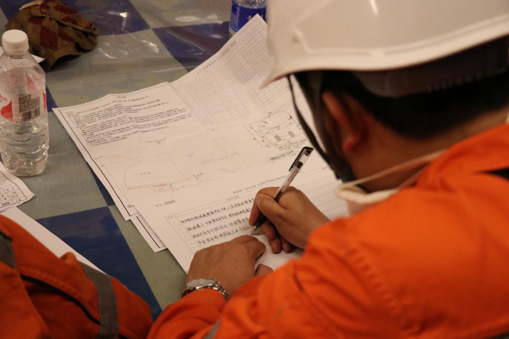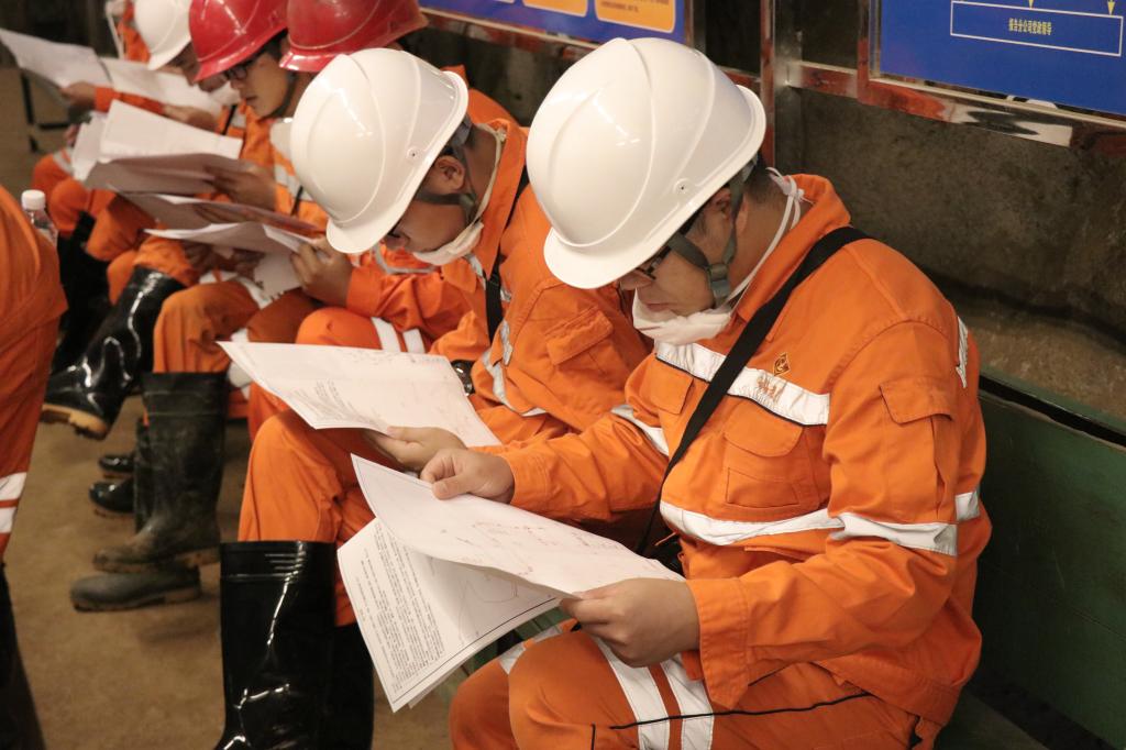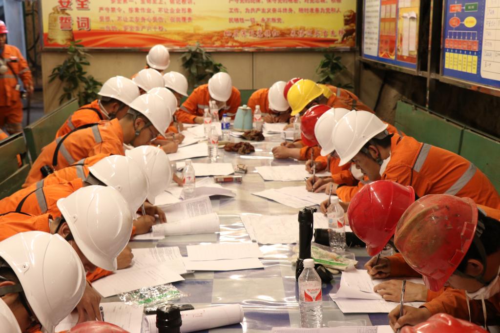 參賽人員經過安全員入坑安全培訓后前往本次考試地點塘子凹坑的主力采場3-11-5E,由于高手云集,最后一輪比賽標準更高,要求更嚴。比賽現場,選手們信心滿滿,躍躍欲試,氣氛嚴肅卻又不失親切。拿到考題后認真勾畫,緊抓重點。在迎頭上,選手們沉著迎戰(zhàn),從容不迫,認真排查現場與施工單上“異樣”,反復查看,爭取不漏任何細節(jié)。