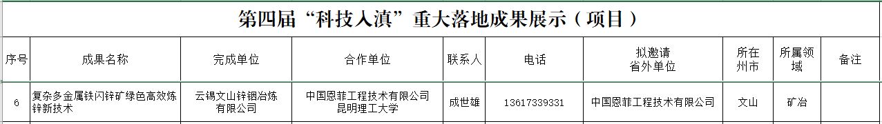 近日,文山鋅銦收到省科技廳通知,國(guó)家科技部、云南省人民政府定于12月初召開(kāi)第四屆科技入滇對(duì)接會(huì),文山鋅銦冶煉公司作為重大落地成果入選單位參會(huì)。