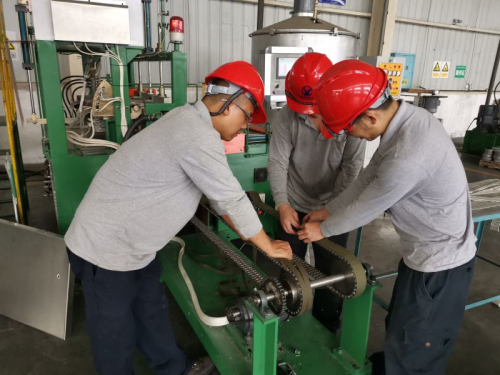 郴州高新材料分公司的無鉛焊條自動澆鑄設(shè)備是為了推進(jìn)無鉛焊條生產(chǎn)自動化、提高勞動生產(chǎn)效率的技改項(xiàng)目和措施,分公司錫材車間員工利用國慶假期時間,順利開展了調(diào)試無鉛條自動澆鑄機(jī)工作,努力解決傳送設(shè)備對無鉛條外觀造成的不良影響。與此同時,錫材車間員工根據(jù)實(shí)際生產(chǎn)需求,不斷溝通聯(lián)系自動澆鑄機(jī)供應(yīng)制造商,不斷對自動澆鑄機(jī)進(jìn)行技術(shù)升級改進(jìn);面對設(shè)備調(diào)試中的種種困難,車間的技術(shù)骨干們堅(jiān)守崗位,盡職盡責(zé),認(rèn)真總結(jié)經(jīng)驗(yàn),連續(xù)嘗試更換了4種隔離傳送材料,確保了無鉛焊條自動澆鑄機(jī)的生產(chǎn)傳送難題得以較好地解決。