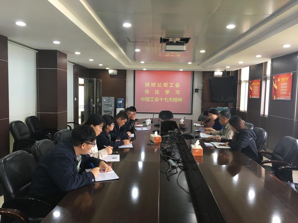 11月9日,錫材公司工會(huì)召開(kāi)工會(huì)干部會(huì)議傳達(dá)學(xué)習(xí)中國(guó)工會(huì)十七大精神。