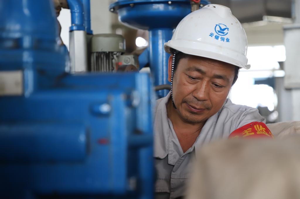 李駿師傅在冶金爐窯修理的崗位上一干就是三十幾年?;貞涀约旱那啻簳r(shí)光,李駿說,當(dāng)時(shí)同齡的黨員非常少,黨組織生活大都在晚上七點(diǎn)到九點(diǎn)這個(gè)階段,用業(yè)余時(shí)間開展黨內(nèi)學(xué)習(xí)。身邊的黨員同志,包括父親在內(nèi),個(gè)個(gè)能吃苦,干活任勞任怨,那種精神一直感染著他。對他來說,入黨的意義,既是年輕人的積極進(jìn)取,也是父輩榜樣力量的指引,更是艱苦奮斗的精神傳承。李駿是銅業(yè)分公司成立后的第一批員工,承擔(dān)著熔煉四座爐子的修理和八臺(tái)風(fēng)機(jī)的維護(hù)。從英格索蘭風(fēng)機(jī)到GD風(fēng)機(jī),他把每臺(tái)風(fēng)機(jī)的習(xí)性摸得透透的?!皺z修一次,好好維護(hù),能保證爐子和全場各個(gè)用風(fēng)的系統(tǒng)順順利利開一年?!卑扬L(fēng)機(jī)維護(hù)好并不是件容易事,李駿師傅輕松的話語里,透出的是責(zé)任和擔(dān)當(dāng)。