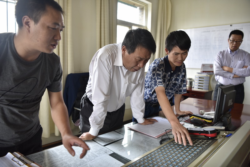 走進冶煉分公司調(diào)度室,中心大屏幕上各工序班組操作運行情況一目了然。張濤查看了調(diào)度值班記錄,詳細詢問了領(lǐng)導值班制落實情況,希望當班人員一定要加強值班,有序調(diào)度,為新中國70華誕創(chuàng)造良好的安全生產(chǎn)環(huán)境。