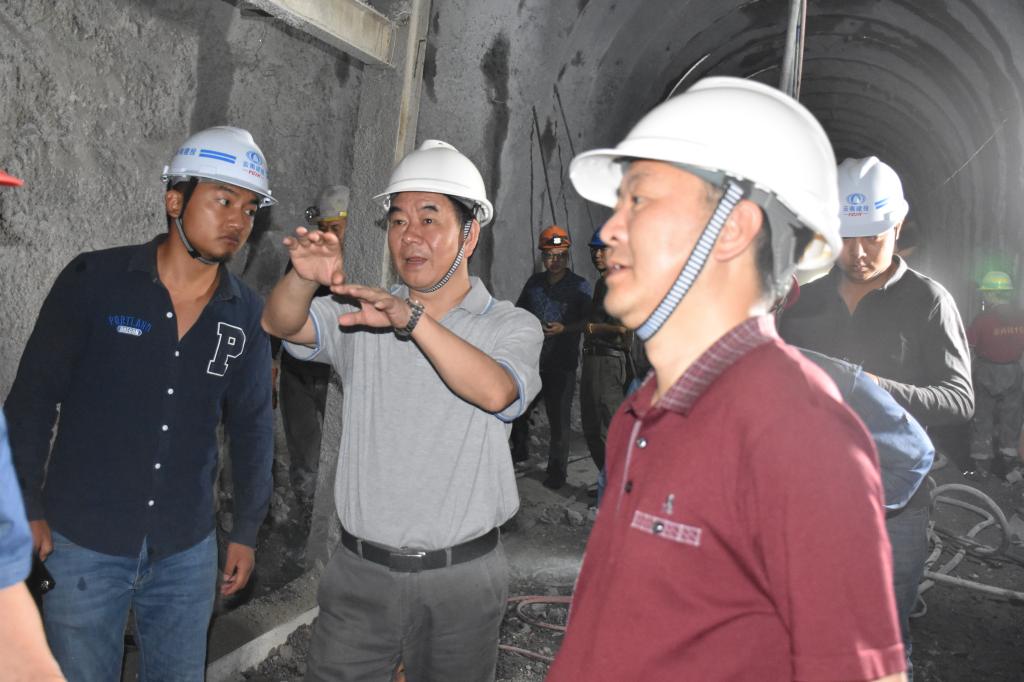 湯發(fā)在象沖尾礦庫(kù)項(xiàng)目建設(shè)現(xiàn)場(chǎng)指揮部,聽(tīng)取庫(kù)區(qū)項(xiàng)目施工、建設(shè)情況匯報(bào),了解庫(kù)區(qū)施工流程、滑坡體治理、項(xiàng)目征地等建設(shè)重點(diǎn)、難點(diǎn)問(wèn)題后,深入到庫(kù)區(qū)施工現(xiàn)場(chǎng),詳細(xì)了解排洪隧洞、排水井架、截水溝砌筑、擋水壩、邊坡開(kāi)挖立方量、尾礦輸送管線等庫(kù)區(qū)建設(shè)子項(xiàng)目推進(jìn)情況。