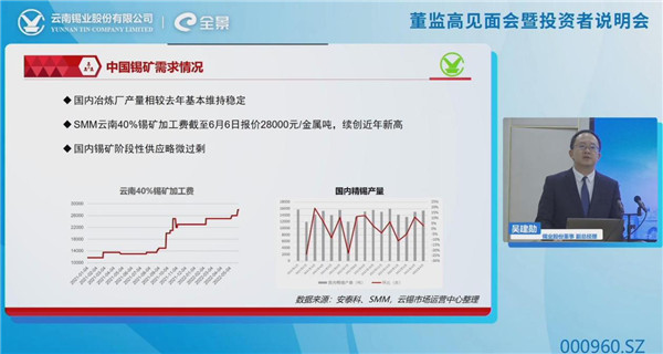 公司董事、副總經(jīng)理吳建勛介紹了錫行業(yè)和市場的相關(guān)情況。