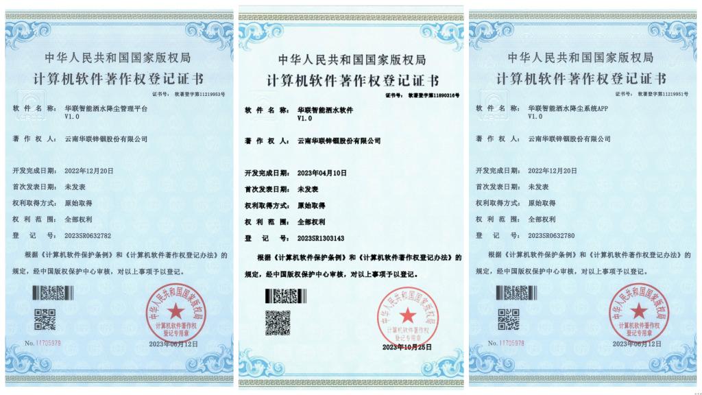 近日,云南華聯(lián)鋅銦股份有限公司“露天礦山粉塵監(jiān)測系統(tǒng)及智能規(guī)劃灑水降塵研究”科研項目管理軟件“華聯(lián)智能灑水軟件V1.0”獲國家計算機軟件著作權登記。
