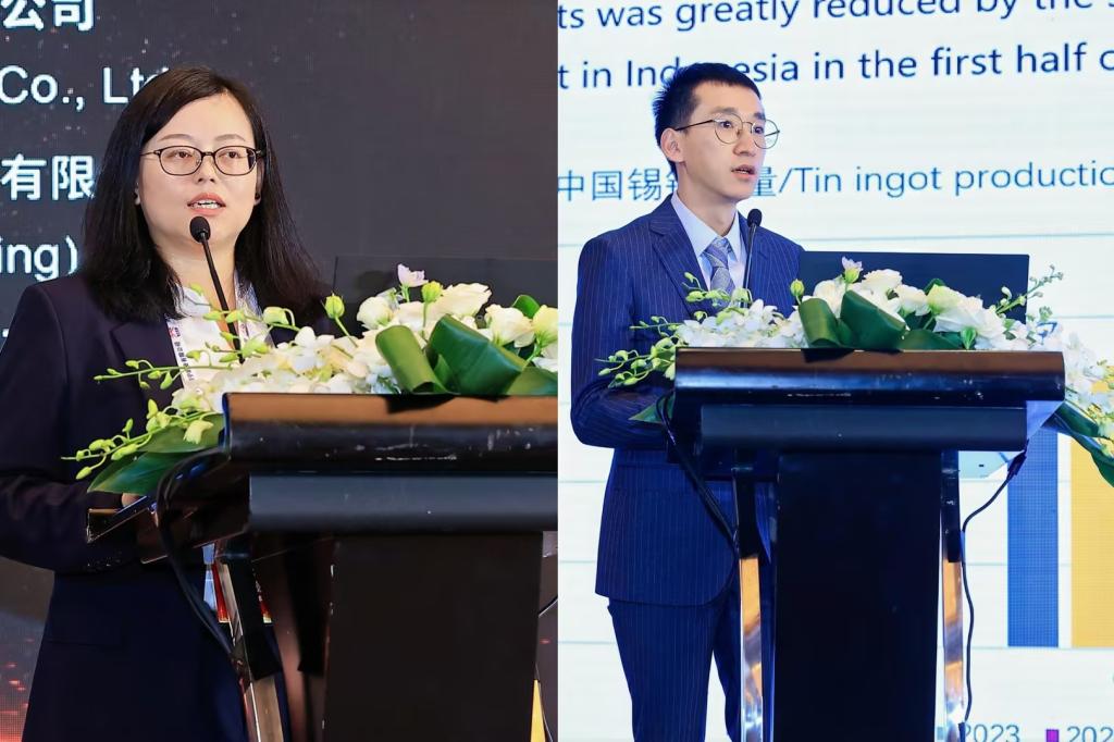 錫業(yè)股份審計(jì)風(fēng)控部經(jīng)理?xiàng)钷敝鞒帧翱沙掷m(xù)發(fā)展挑戰(zhàn)與機(jī)遇”環(huán)節(jié);錫業(yè)股份市場(chǎng)運(yùn)營(yíng)中心張哲語(yǔ)作《中國(guó)錫市場(chǎng)展望》報(bào)告。