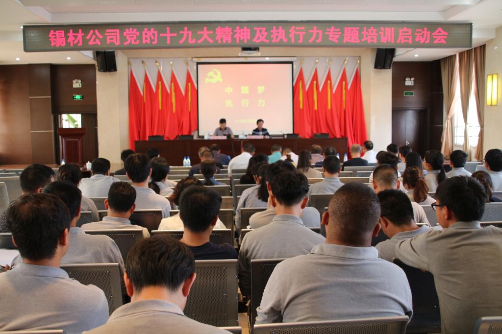 8月9日,錫材公司召開(kāi)黨的十九大精神和執(zhí)行力專(zhuān)題培訓(xùn)啟動(dòng)會(huì),黨委書(shū)記、董事長(zhǎng)王鵬飛作開(kāi)班動(dòng)員,控股公司黨委巡察工作第三組組長(zhǎng)黃梓嘉應(yīng)邀以“中國(guó)夢(mèng)執(zhí)行力”為主題開(kāi)講第一課,為本次專(zhuān)題培訓(xùn)開(kāi)了一個(gè)好頭。錫材公司80余名黨員干部現(xiàn)場(chǎng)聆聽(tīng)了培訓(xùn)課程。