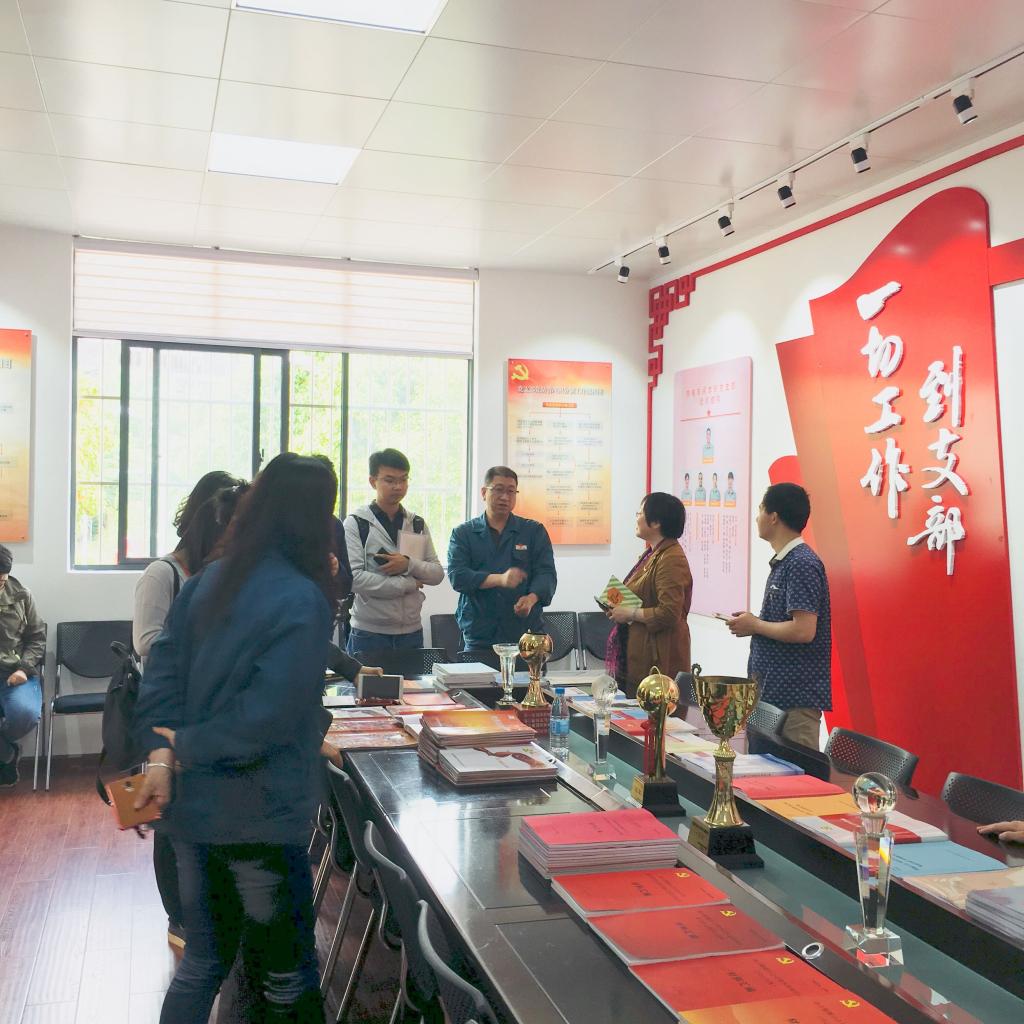 在昆鋼動(dòng)力能源分公司黨支部工作人員的帶領(lǐng)和解說下,市場管理部黨員參觀了黨建成果展示區(qū)。昆鋼動(dòng)力能源分公司黨支部按照“十有”標(biāo)準(zhǔn)建成了既管理規(guī)范、又特色鮮明的活動(dòng)陣地,由黨員活動(dòng)室、支部工作室、黨建閱覽室及若干展板展臺等組成。其中,黨員活動(dòng)室采用開放式布局,有能容納約30人的會議桌椅,桌上整齊擺放著支部工作手冊、黨員手冊、黨建文件匯編、黨員活動(dòng)臺賬、黨建工作臺賬及黨報(bào)黨刊等資料;紅色是主色調(diào),背景墻上布置著黨旗、入黨誓詞、黨員的權(quán)利義務(wù)、黨的紀(jì)律、“三會一課”制度、黨日制度、黨員民主評議制度和黨建業(yè)務(wù)流程等內(nèi)容;左邊墻上懸掛著黨支部組織結(jié)構(gòu)圖、黨支部及黨員公開承諾;右邊墻上布置有黨務(wù)公開欄,包含黨員示范崗、黨員積分考核及黨員責(zé)任公示、黨費(fèi)繳納情況、支部計(jì)劃總結(jié)、主題黨日活動(dòng)簡報(bào)等內(nèi)容;黨建閱覽室書架上擺放著各種書籍和報(bào)刊雜志,干部員工可現(xiàn)場閱讀或登記借閱。印象最深刻的,還是黨員政治生日的做法,提醒黨員時(shí)刻牢記自己的入黨日期,重溫入黨誓詞,自覺遵守黨章,認(rèn)真履行黨員義務(wù)。