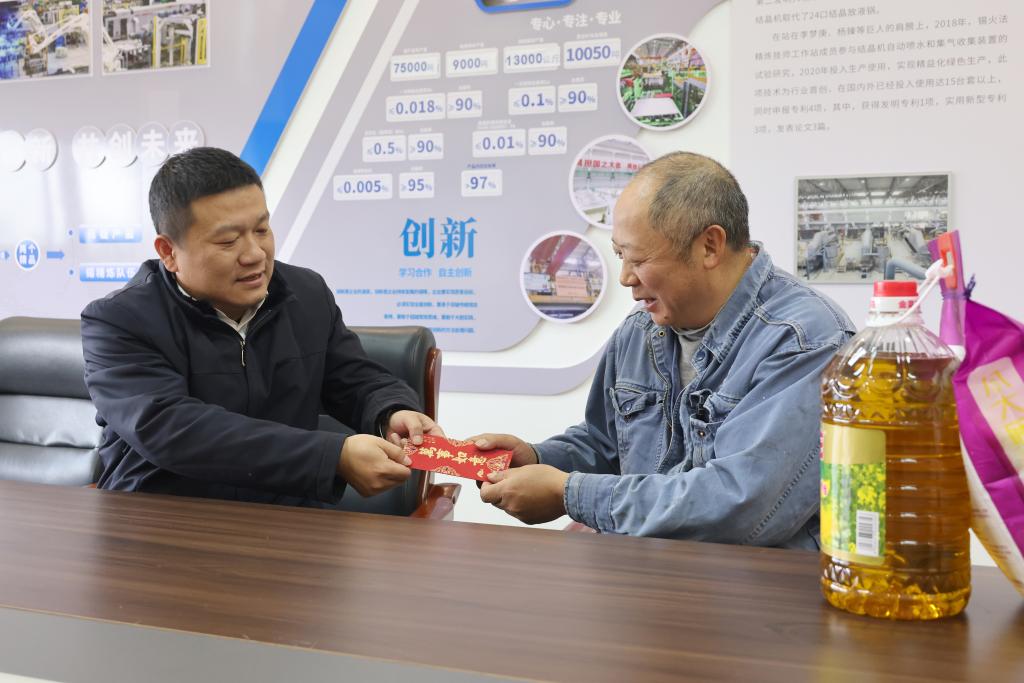 “過節(jié)好!提前給您和家人拜個年!”“現(xiàn)在身體怎么樣?”家里還有什么困難?“孩子還有幾年畢業(yè)?”……每到一處,聲聲問候,都如暖流般滋潤人心;句句關(guān)懷,盡顯情真意切。錫業(yè)股份領(lǐng)導(dǎo)班子成員與慰問對象及其家屬圍坐一團(tuán),親切交談,細(xì)致入微地詢問他們的身體狀況、生活情況等,細(xì)心聽取他們對公司發(fā)展的寶貴意見。公司領(lǐng)導(dǎo)感謝離休干部、老黨員為公司發(fā)展做出的貢獻(xiàn),叮囑他們保重身體,享受健康生活;向辛勤付出和無私奉獻(xiàn)的勞模致以崇高敬意,希望他們繼續(xù)發(fā)揚(yáng)模范帶頭作用,在技術(shù)創(chuàng)新、攻關(guān)創(chuàng)效方面發(fā)光發(fā)熱;鼓勵困難職工、困難黨員保持積極樂觀向上的精神狀態(tài),相信在企業(yè)大家庭的幫助下,日子會過得越來越好。