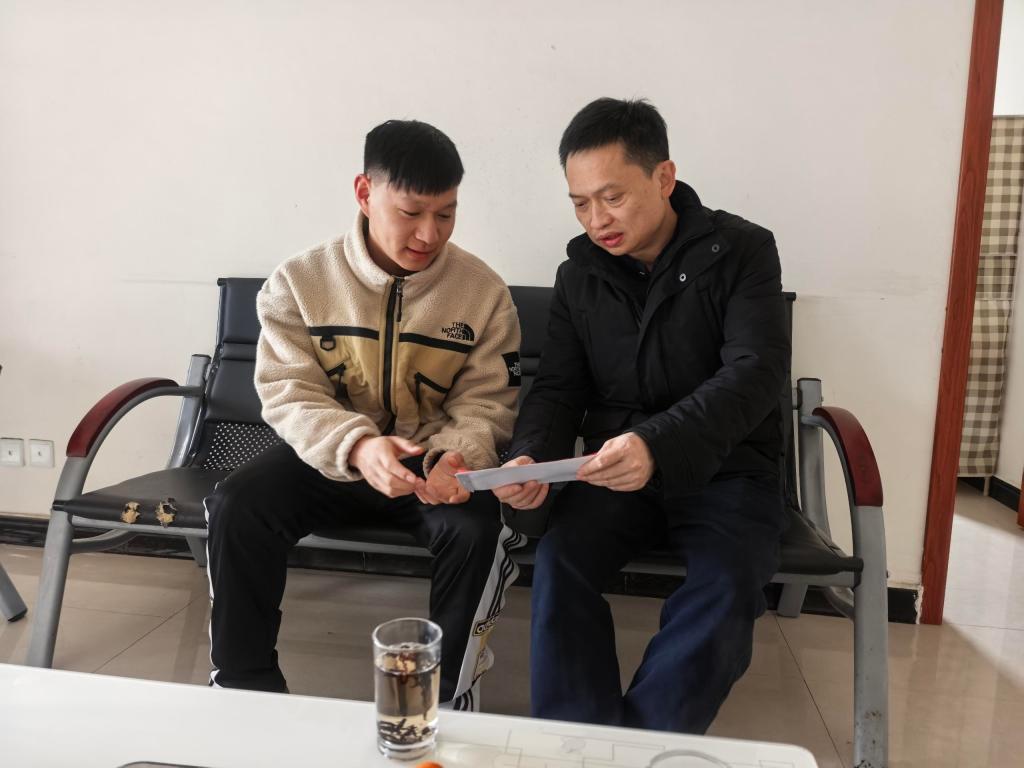 錫業(yè)股份黨委副書記、工會主席,華聯(lián)鋅銦黨委書記、董事長張揚(yáng)慰問華聯(lián)鋅銦質(zhì)檢中心困難黨員周國彪