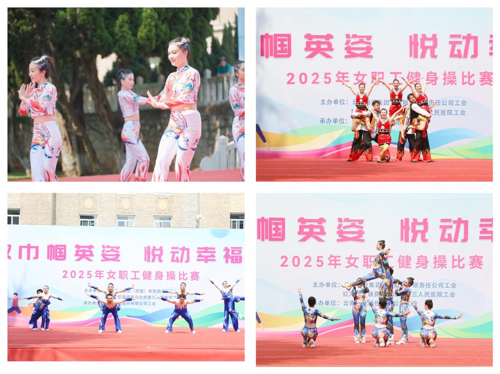 賽事設置民族健身操規(guī)定套路《同心共筑中國夢》及自編有氧健身操兩大項目。各參賽隊伍身著統(tǒng)一服裝,精神抖擻,依次登臺亮相。在第一輪規(guī)定套路比賽中,各隊把動感十足的現(xiàn)代健身操與民族特色元素融合創(chuàng)意編排。伴隨著歡快的音樂節(jié)奏,選手們伸展、跳躍、旋轉,動作流暢自然,充滿力量感與節(jié)奏感,用靈動的舞姿和自信的笑容,詮釋著對健身操運動的熱愛,展現(xiàn)廣大云錫女職工積極向上、團結協(xié)作的精神風貌,充分詮釋巾幗風采與健康云錫的主題內涵。