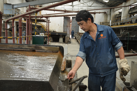 記得有一次浮選給藥管堵塞無(wú)法正常給藥,大大影響了浮選指標(biāo)及操作過(guò)程,需立即輸通。當(dāng)師傅和我趕到給藥臺(tái)時(shí),發(fā)現(xiàn)不是管子塞,而是給藥箱和管子的接口堵塞。當(dāng)時(shí)我束手無(wú)策,心想只能拿桶來(lái)把藥一桶一桶裝到別的地方或倒掉才行,這樣可能要耗費(fèi)半小時(shí)。然而師傅的一個(gè)舉動(dòng)讓我大吃一驚,師傅把手直接伸下去,不到兩分鐘管子就疏通了,給藥恢復(fù)正常。然而藥劑不僅有臭味,而且有損于皮膚和身體。我頓時(shí)目瞪口呆,為自己與師傅的差距而慚愧不已。